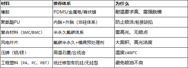 硅酮迁移可能导致后续喷涂、粘接困难。可考虑无硅脱模剂或进行表面处理。
